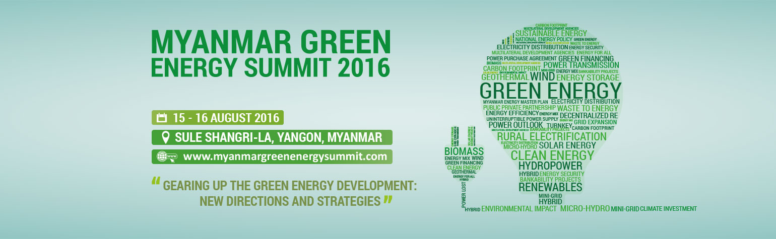 The hosting of the 4thMyanmar Green Energy Summit 2016 is to provide an interactive platform for potential investors and key players of the industry from over 25 countries to get updated on the new directions, investment policies and market potential of green energy in Myanmar; at the same time discuss strategies and share insights to support the National Electrification Plan, improve policies and regulation around electricity and renewable energy, and develop framework to plan out future electrification programs.